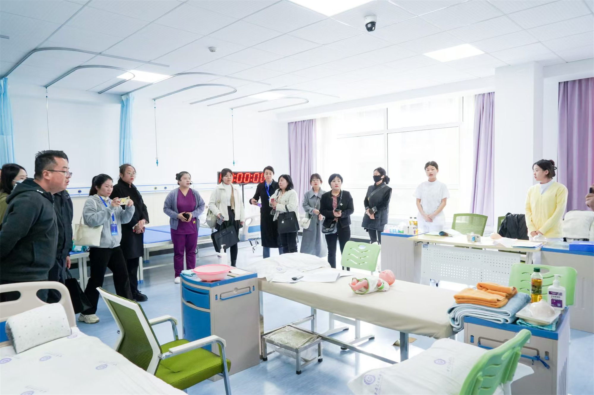 王一强首先对学员们的到来表示热烈欢迎。随后,实训室负责人带领全体学员实地观摩了护理实训中心,详细介绍了各个实训室的功能及护理设备的使用方法。过程中,学员们与实训室负责人积极互动,并就此次活动提供的学习机会表达感谢,表示今后将所学知识应用于实际工作,助力行业发展。最后,王一强与安小玲处长、张克强副处长进行座谈,对未来的人才培养模式、校企合作的深化、产教融合的推进以及订单式培养的具体实施等方面进行了深入交流。