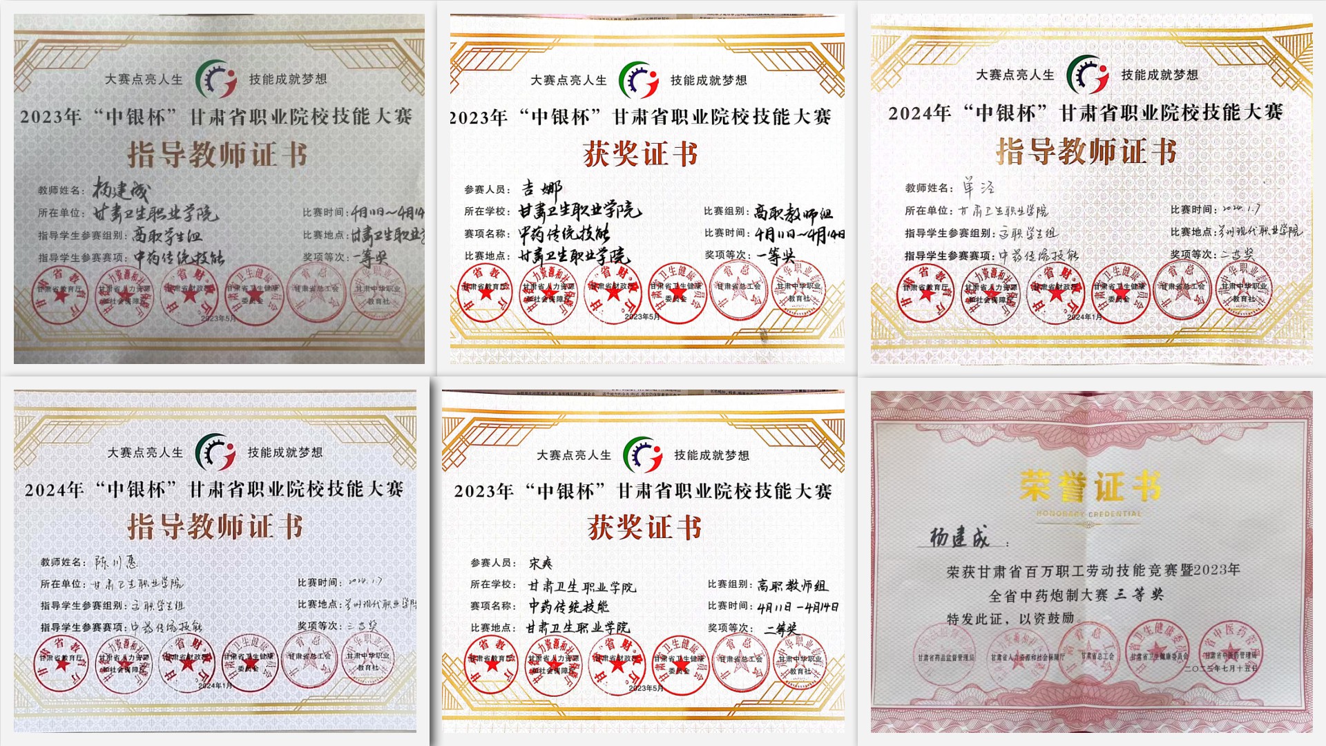 荣获甘肃省百万职工劳动技能竞赛暨2023年全省中药炮制大赛
