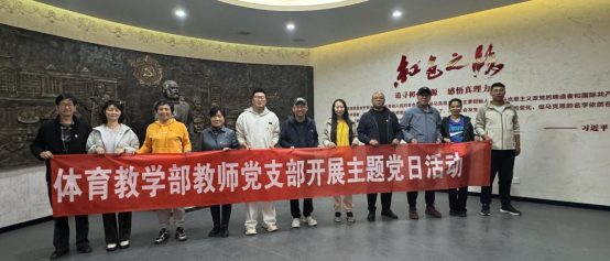 其次在马克思主义学院红色文化教育实践基地开展“赓续红色血脉 践行育人使命”主题党日活动。为深化党史学习教育、强化党性修养,活动通过实地参观、重温誓词、沉浸式学习等方式,推动党史教育与体育育人深度融合,激发党员教师的责任感与使命感。