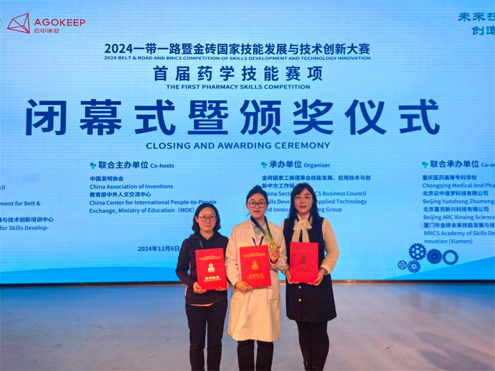 我校在“2024一带一路暨金砖国家技能发展与技术创新大赛”首届药学技能赛项中荣获金奖