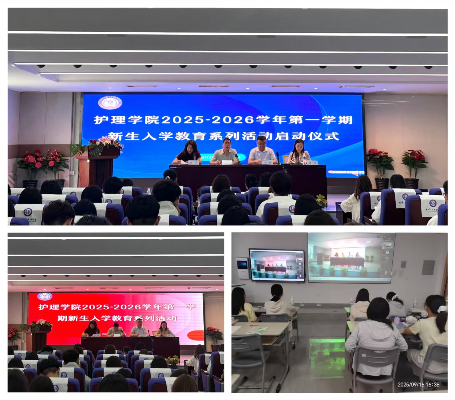 9月16日,护理学院新生入学教育系列活动通过线上线下相结合方式举行,主会场设在南丁楼5楼报告厅。护理学院班子成员、新生班专兼职辅导员、行政部门教师及2025级全体新生共计1400余人参加了此次活动。