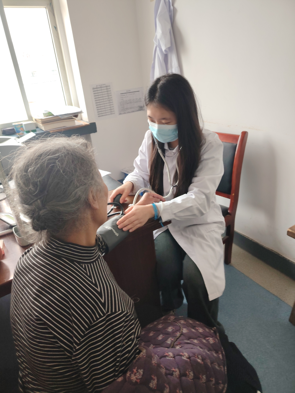 寒假期间,我来到秦安县魏店中心卫生院,以一名实习助手的身份开启了实践旅程。在基本医疗协助工作中,我积极协助医护人员完成各项基础任务。为患者测量血压时,我专注地聆听着血压计传来的每一声跳动,确保数据的精准;量体温时,我会细心地叮嘱患者测量的注意事项,轻轻将体温计递到他们手中;帮忙换药时,我严格遵循无菌操作原则,小心翼翼地揭开纱布,仔细观察伤口情况,动作轻柔地更换上新的药物和纱布,尽量减轻患者的不适。居民体检期间,我忙碌在各个检查区域。协助医护人员为居民测量身高、体重时,我认真调试设备,确保数值准确无误;在视力检查区域,我协助医生递上指示棒,引导居民准确辨认视力表上的符号,保障体检工作的顺利进行。