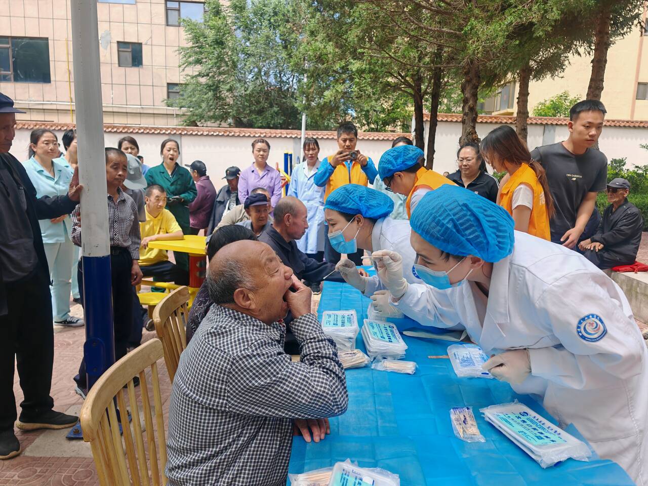 上午7时30分,实践队在学院党总支副书记带领下启程,历经3小时车程抵达会宁县福利院。福利院负责人代表院方对师生到来表示热烈欢迎。实践队首先举行爱心捐赠仪式,学校工会捐赠的米、面、油等生活物资与口腔医学院购置的牙膏、牙刷、毛巾等口腔护理套装整齐排列,传递着对老人们的贴心关怀。随后,志愿服务正式展开:医护小组搭起简易诊疗台,为30余名老人检查口腔并测量血压,针对牙周病防治、义齿清洁、高血压等问题提供“一对一”指导;“推普+健康”宣教组则通过情景演示,帮助现场工作人员和老人掌握规范用语及慢性病管理知识,现场笑声与掌声不断。