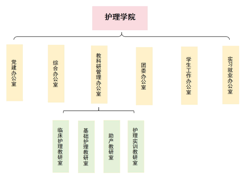 设4个教研室:临床护理教研室、基础护理教研室、助产教研室、护理实训教研室。