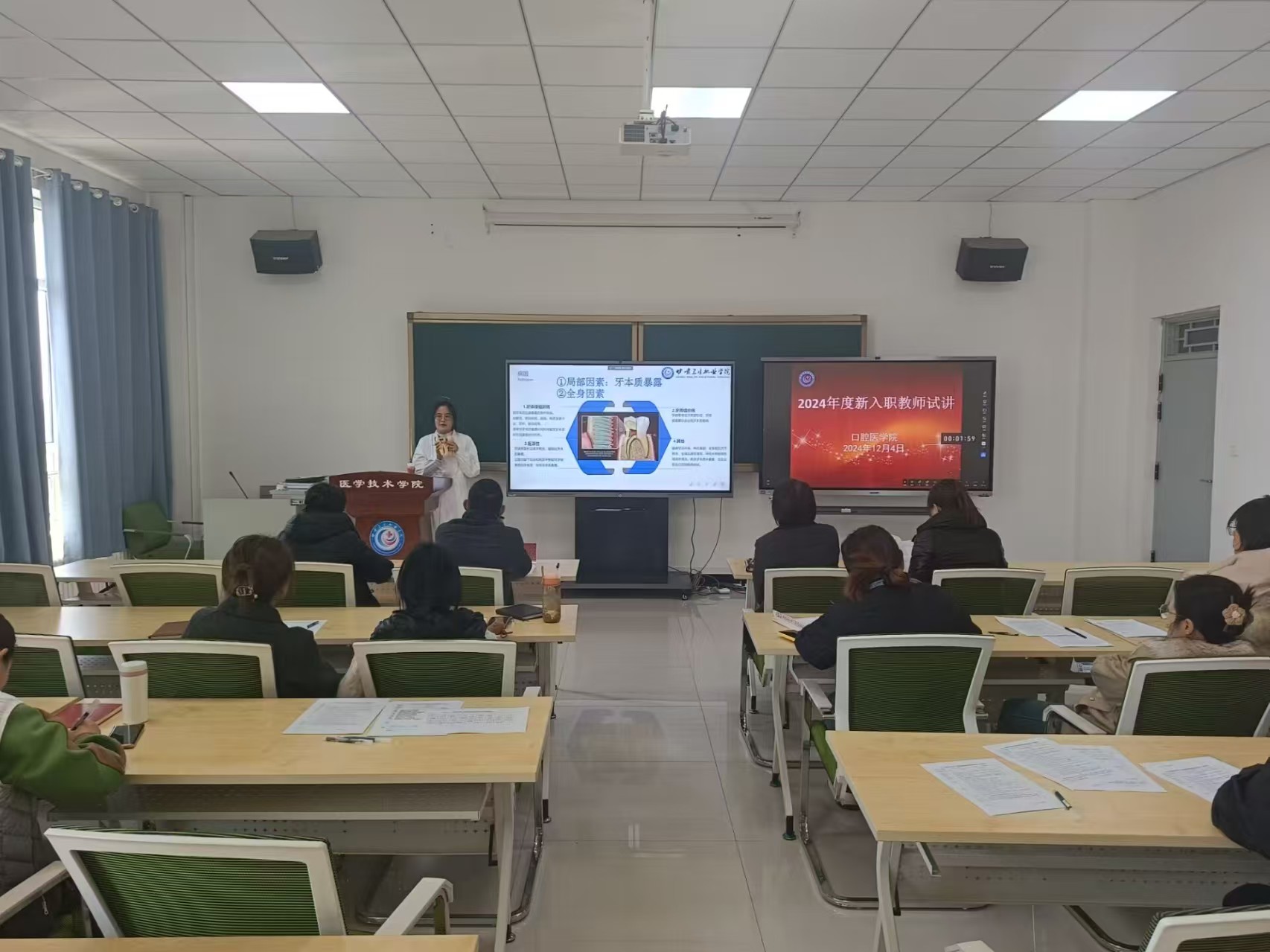 为进一步加强师资建设、持续提升教学质量、促进新教师更好更快地进入角色,口腔医学院于12月4日在7B517会议室组织新入职教师进行了教学试讲听课考核评定活动。学校教务处副处长陈佳、口腔医学院领导班子及口腔专业课所有教师参加了本次活动。
