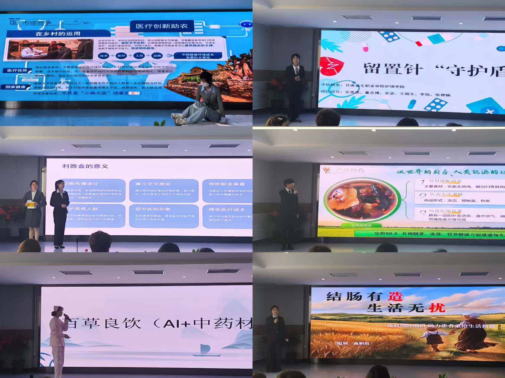 本次大赛呈现了一场融合创新思维与实践激情的精彩盛宴,不仅是学院创新成果的集中展示,更激发了学生的创新意识与创业热情,为学院创新创业教育注入了新的活力,推动学院在该领域迈出了坚实的一步。未来,护理学院将持续深化创新创业教育工作,致力于培养更多具备创新能力与实践能力的高素质护理人才,助力护理行业的创新发展。