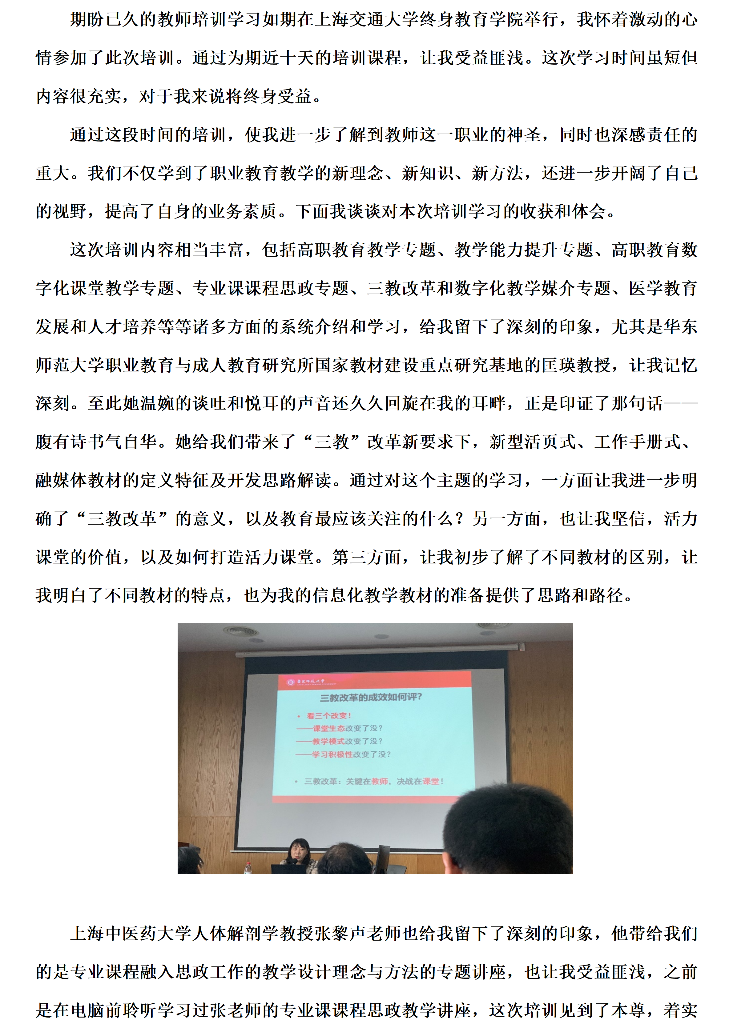 【上海交通大学培训心得】马晓丽:树立终身学习理念,提升自身综合素养