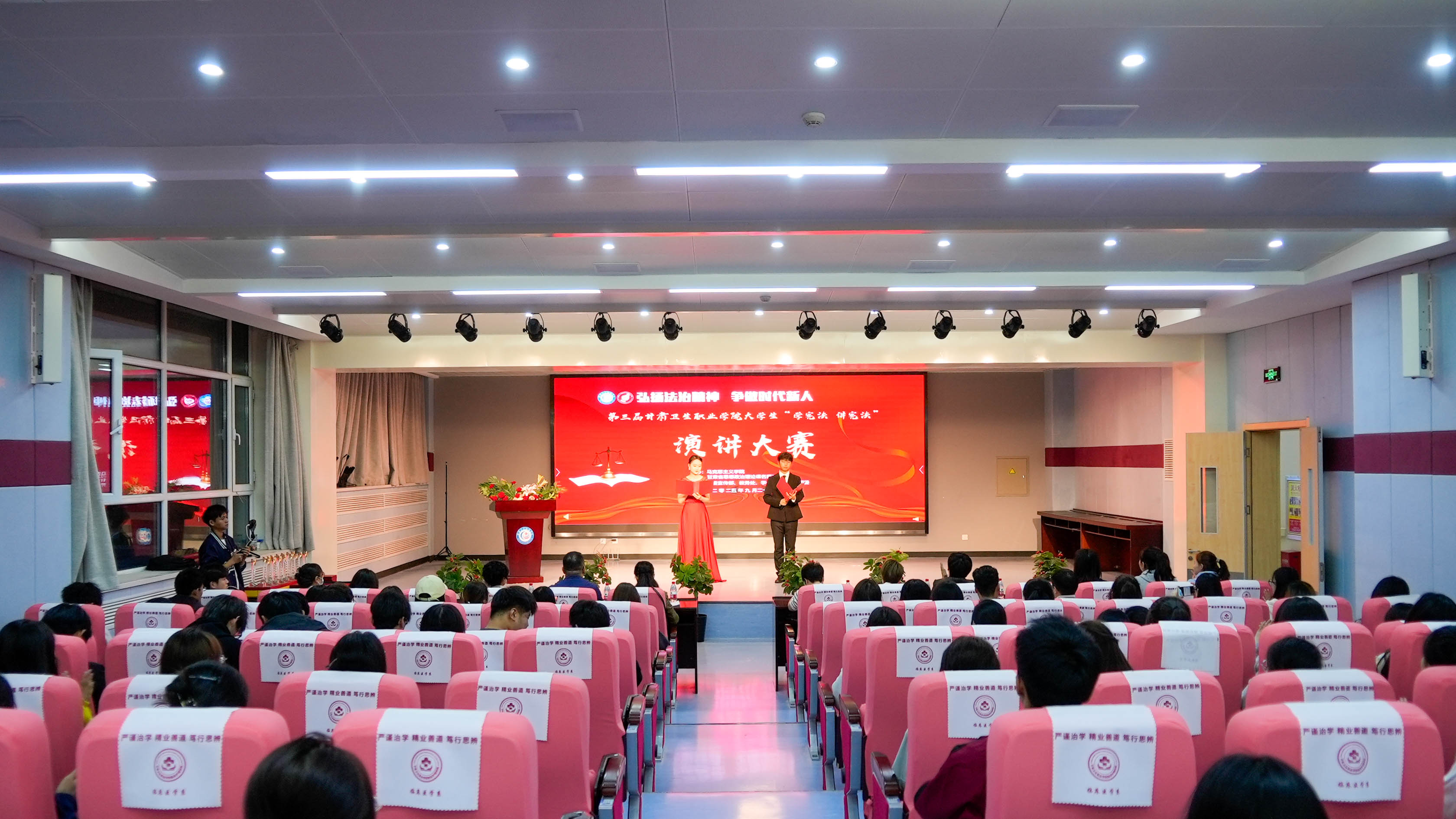 此次比赛自5月份正式启动,经过班级初赛、学院复赛,16名选手脱颖而进入决赛,在思政课教师的精心辅导下,同学们紧扣“弘扬法治精神,争做时代新人”的比赛主题,结合亲身经历、现实案例和社会热点事件等,讲宪法故事、谈宪法知识、论宪法精神,诠释宪法的至上地位、时代价值和实践途径,为台下的老师和同学们带来了一场精彩的演讲,赢得了阵阵掌声。学生知行合一理论宣讲社团社员和各班级100余名代表现场观看了比赛。