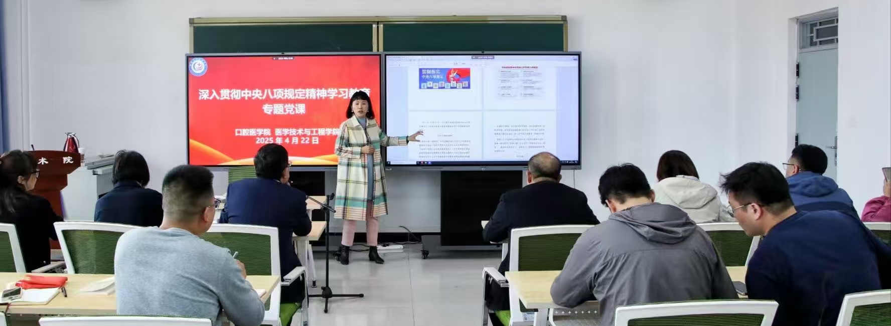 为做好深入贯彻中央八项规定精神学习教育,进一步提升党员的政治素养和纪律意识,4月22日下午,口腔医学院、医学技术与工程学院党总支在扁鹊楼517会议室召开专题党课学习会议。