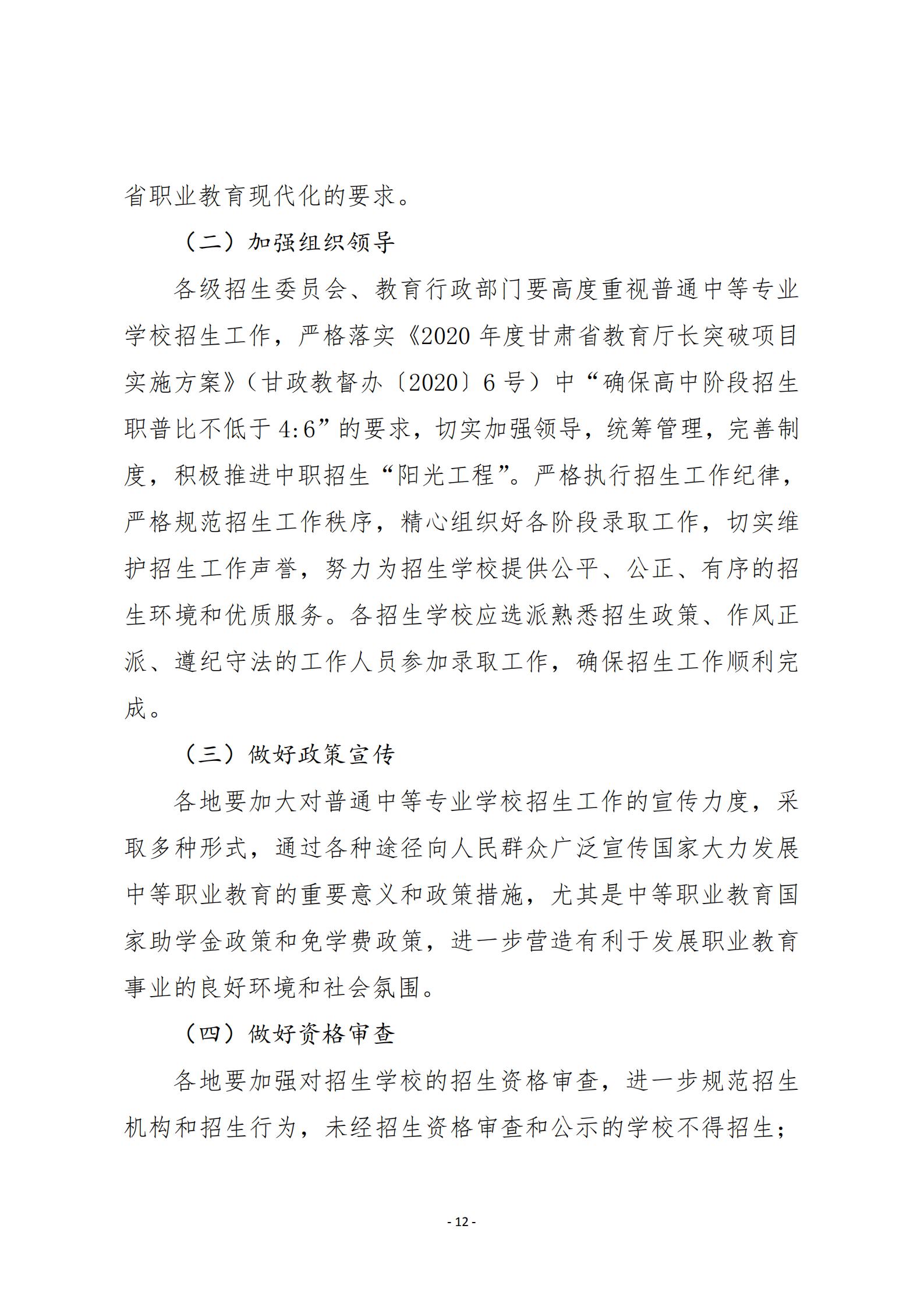 关于2020年甘肃省中等专业学校招生工作的通知[甘招委发26号]