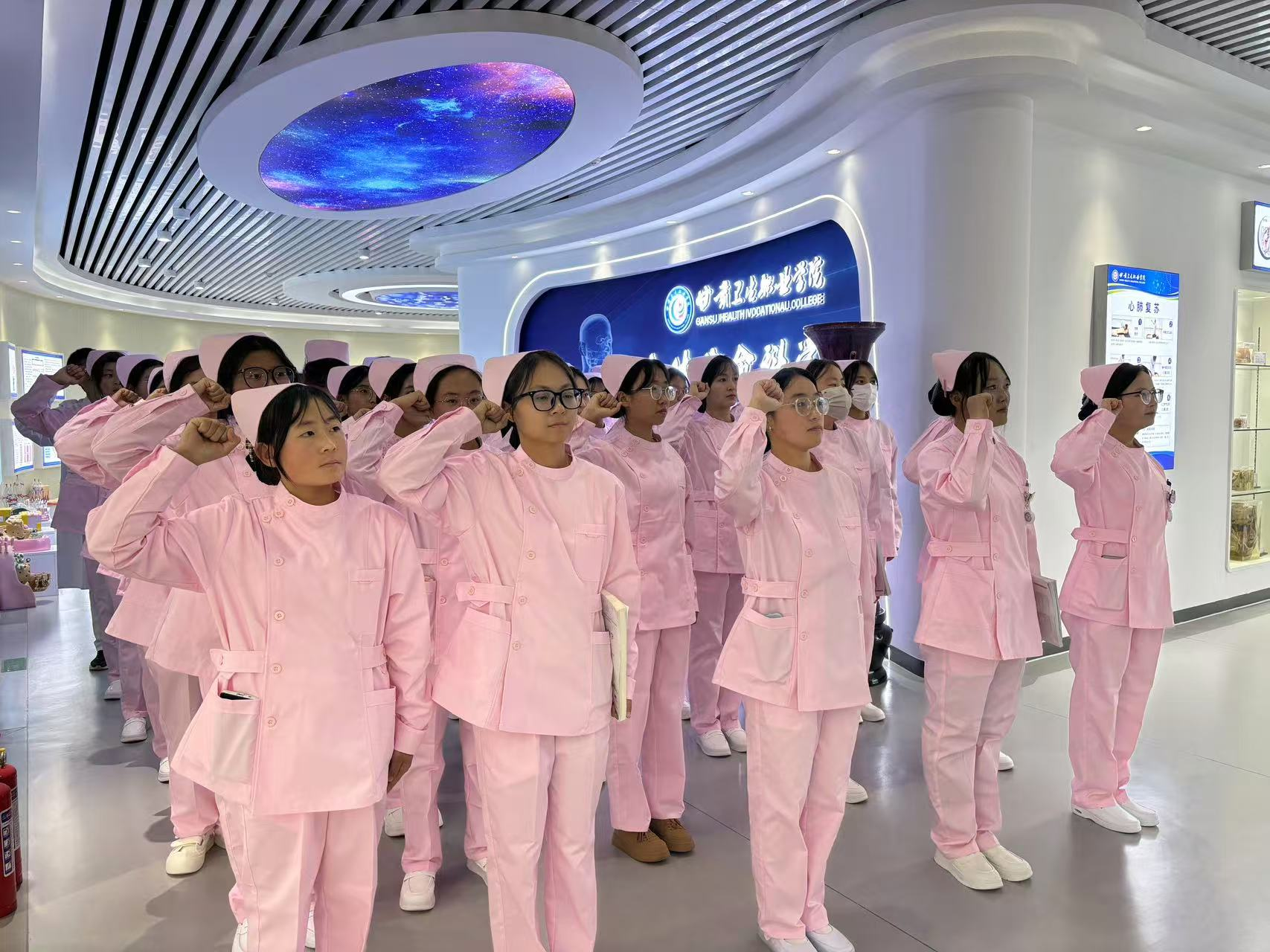 同学们身着整洁的白大褂,来到学校人体生命科学馆,在解剖老师的带领下,高举右手,郑重地宣誓:“健康所系,性命相托……我志愿献身医学,热爱祖国,忠于人民……”这铿锵有力的医学生誓言在科学馆内回荡,不仅表达了对医学事业的无限热爱,也彰显了对生命的崇高敬意。