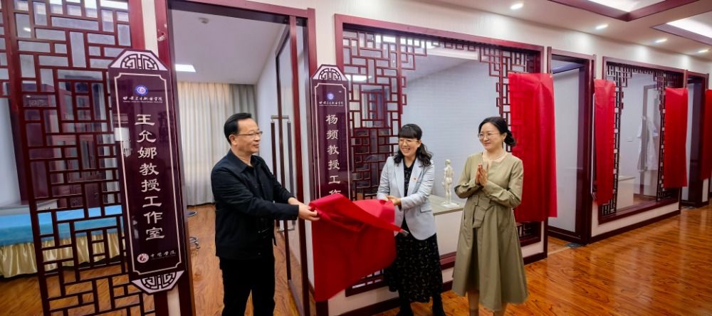 为了进一步推动中医师承教育、深化产教融合,助推学校高质量发展,4月15日上午,中医学院“甘肃省非遗项目传承工作站”“中医世家传承工作站”“教授工作室”及“博士工作室”揭牌仪式在岐黄楼三楼举行。学校党委委员、副校长杨频,学院班子成员、非遗传承人、中医世家传人、教授团队、博士团队以及师生代表齐聚一堂,共同见证了这一重要时刻。